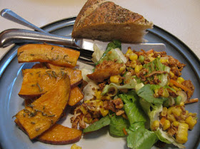Here's another delicious sidedish that my mother spoiled us with when we went to visit this summer! We had the sweet potatoes with Chili-Chicken Salad and fresh bread.